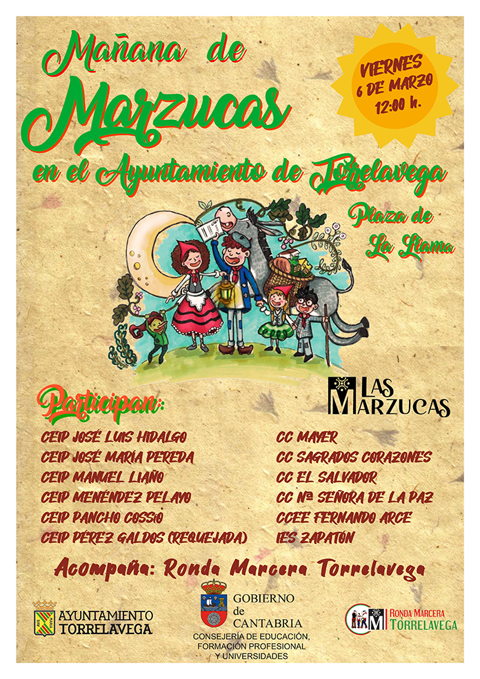 La Asociación Ronda Marcera de Torrelavega, en colaboración con el Ayuntamiento de Torrelavega, la Consejería de Educación, Formación Profesional y Universidades, centros educativos y docentes, se complace en anunciar la celebración del acto final del proyecto «Las Marzucas», que se celebra por cuarto año consecutivo, un evento que reunirá a más de 400 escolares de un instituto y diez colegios de Torrelavega y uno de Requejada, para cantar las tradicionales Marzas, junto a la Ronda Marcera de Torrelavega.
